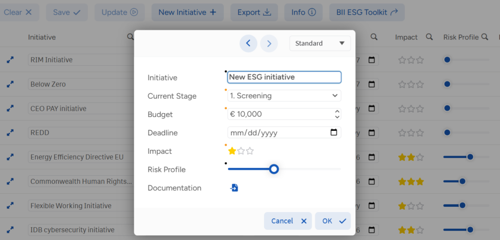 The screenshot above is from the ESG Initiatives demo application.