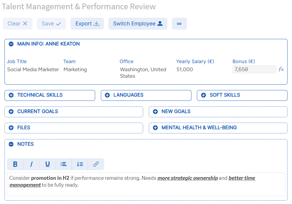 When a new record is created, some cells can be prefilled by default values to make it easier for end users. When creating a record about a new employee, it could be a starting date prefilled by the first day in a next month – with an option to manually update it. If you have a country selected in your CRM Qlik application, a new record could have this country predefined.